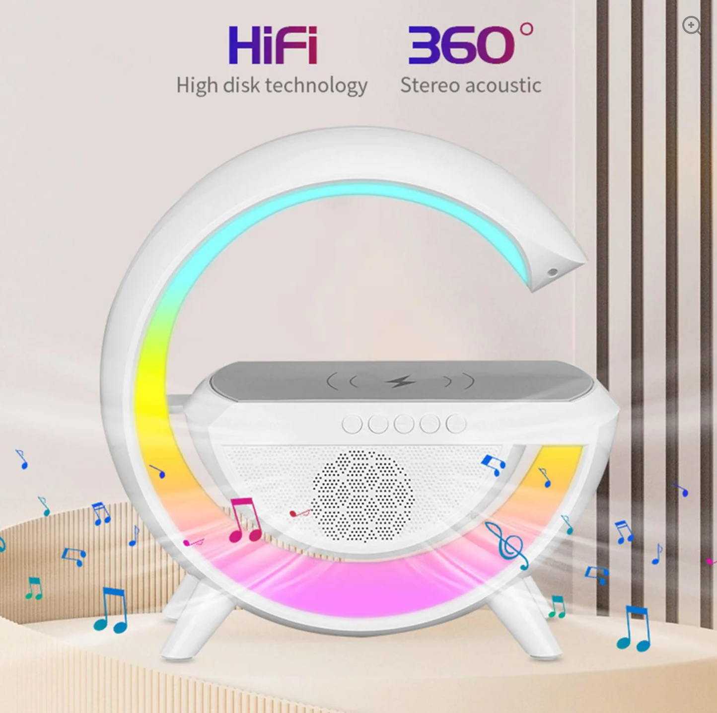 La lámpara multifunción con altavoz y carga inalámbrica es un dispositivo todo en uno que combina funcionalidad y estilo, diseñado para transformar cualquier espacio en un ambiente mágico y acogedor. Ya sea para la habitación de tus hijos, para tu dormitorio o para tu escritorio, esta lámpara inteligente LED RGB ofrece una amplia variedad de características que se adaptan a todas tus necesidades.