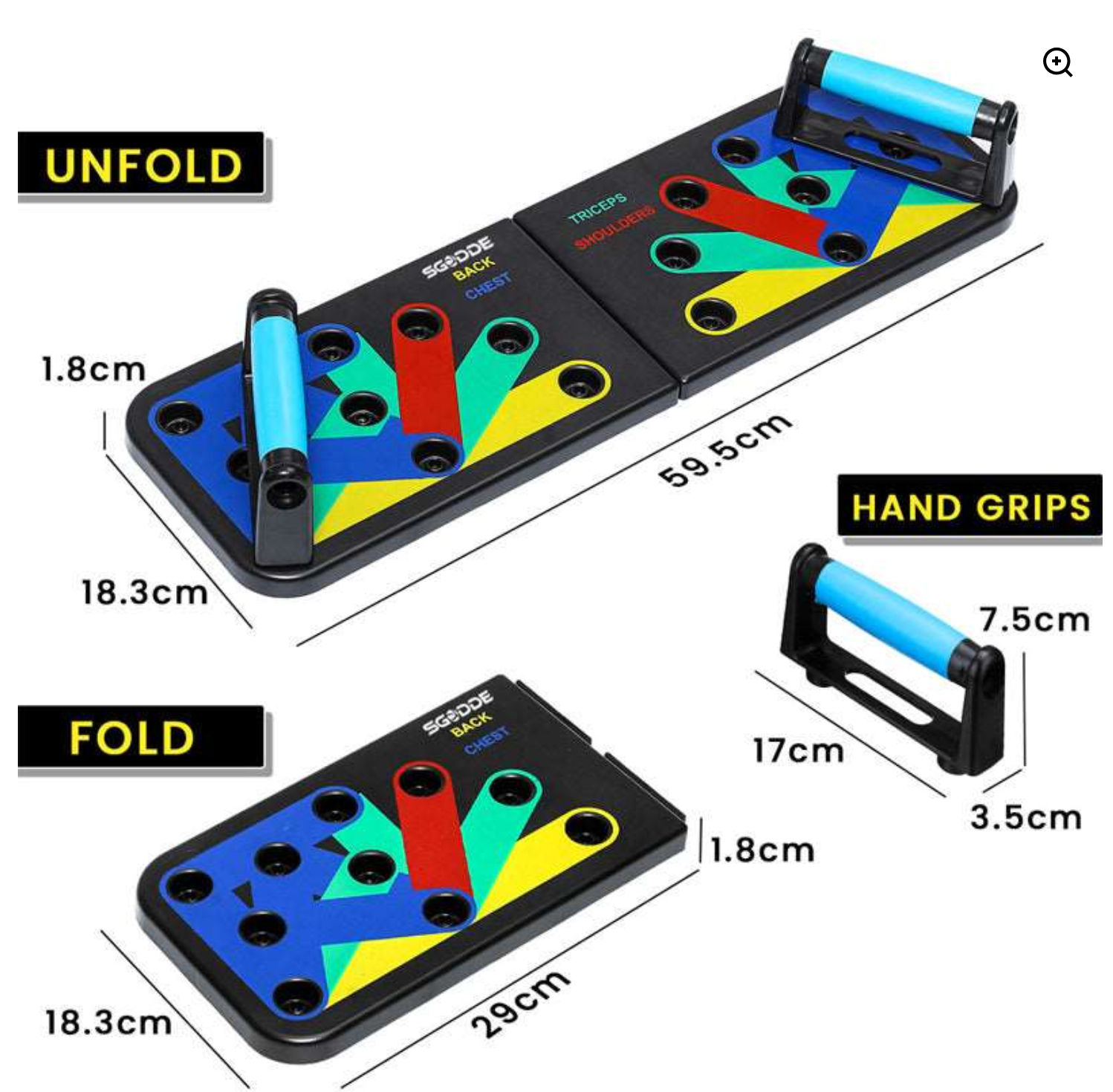 Prepárate para un viaje transformador en tu rutina de ejercicios con nuestra Tabla de Flexiones 12 en 1. Este versátil equipo de fitness te permite trabajar diferentes grupos musculares sin la necesidad de ir al gimnasio. Su diseño plegable lo hace fácil de transportar y almacenar, convirtiéndolo en el compañero perfecto para entrenar en cualquier lugar.